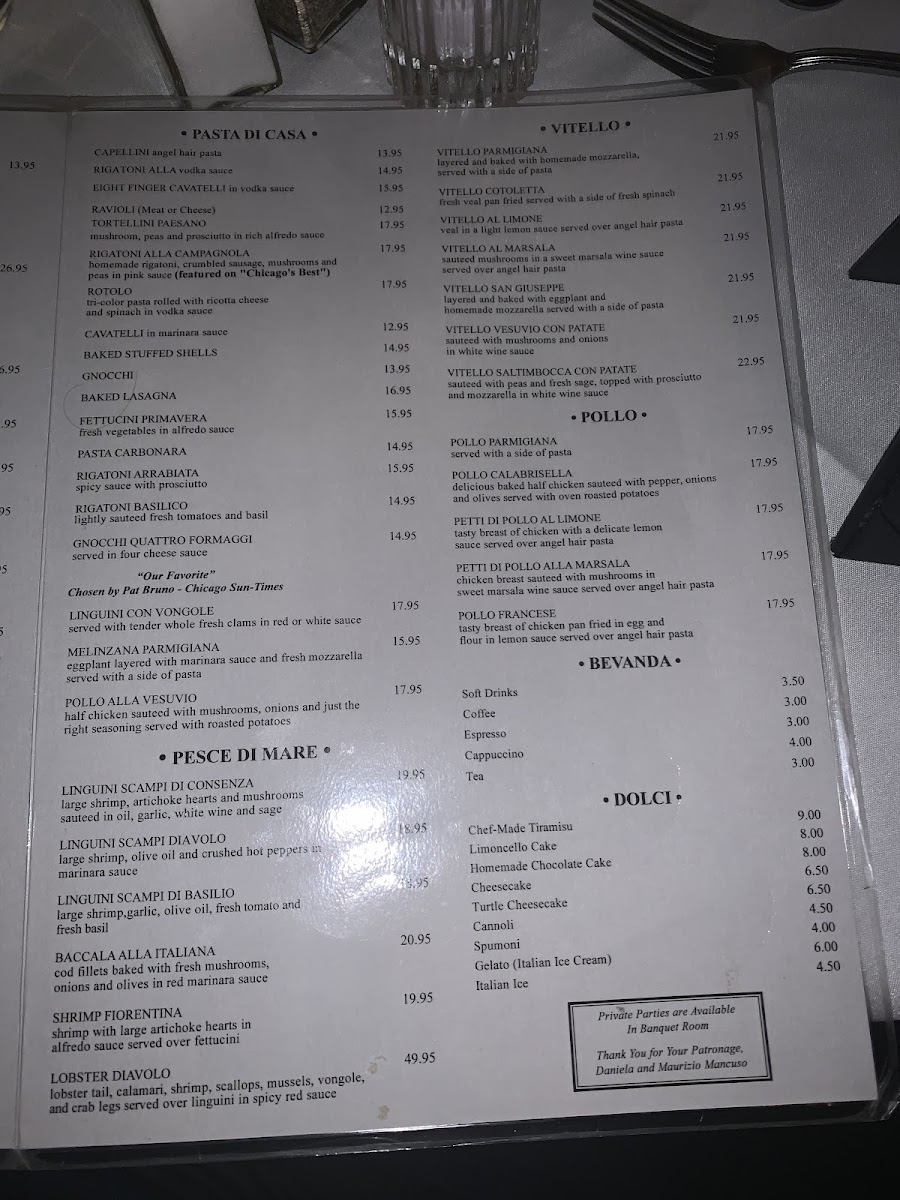 Large shrimp, artichoke hearts, and mushrooms sauteed in oil, garlic, and white wine. Served over pasta.